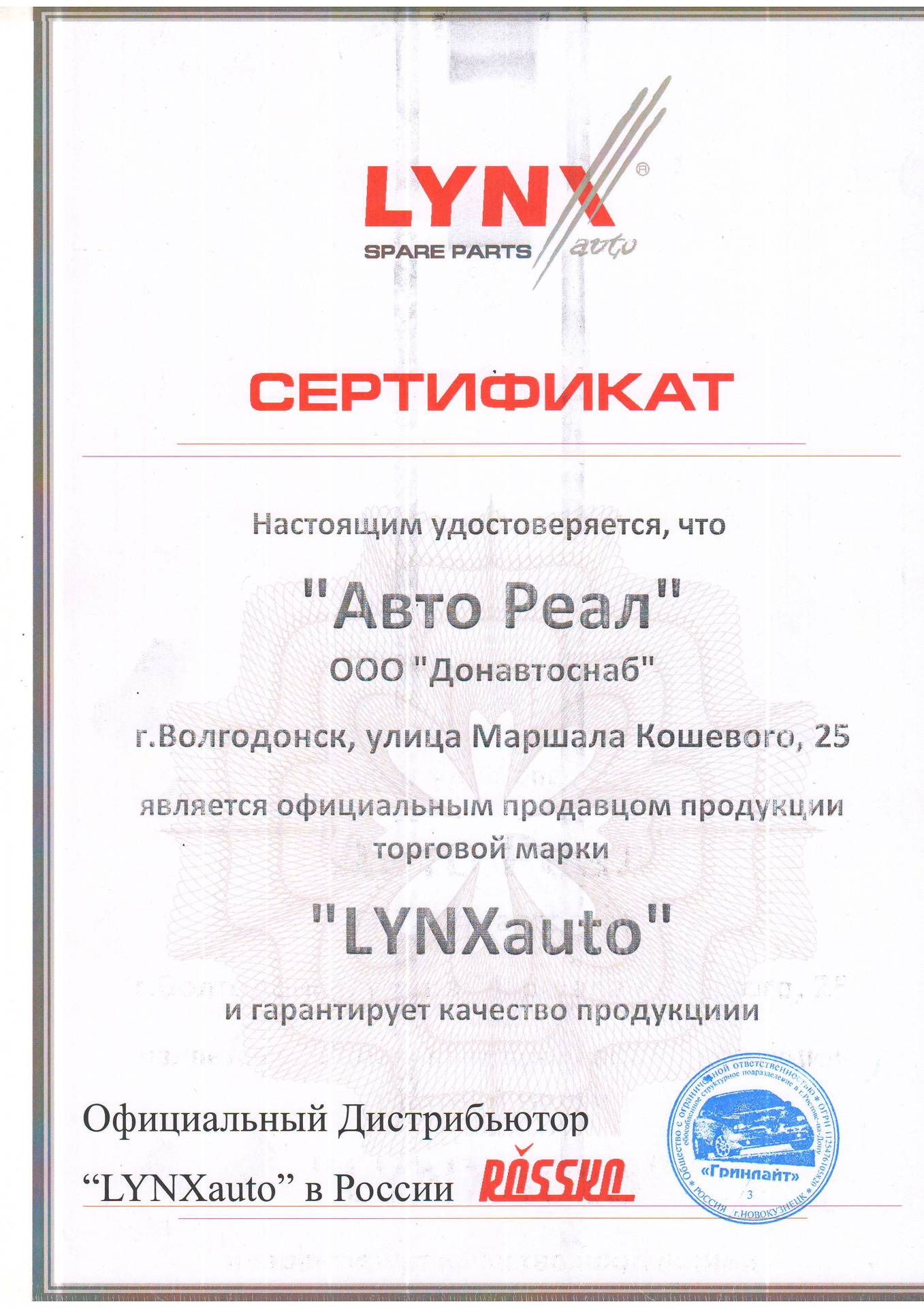 ООО "АВТОРЕАЛ ПЛЮС" ОГРН 1136174004086 ИНН 6143082475 КПП 614301001 ОКПО 24174348 г. Волгодонск ул Маршала Кошевого 25 строение 4, e-mail: autoreal61@bk.ru